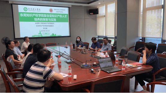 为了进一步完善2023年知识产权专业修订人才培养方案,2023年5月31日,我院在松山湖大学创新城召开“东莞知识产权学院复合型知识产权人才培养的探索与实践”研讨会,具体探讨2023年知识产权专业人才培养方案中产教融合课程的开设。法社学院银龄专家王岩教授、院特聘产业导师李富山教授、广州知识产权法院的陈法官、东莞知识产权保护中心的同志等参加此次会议。
