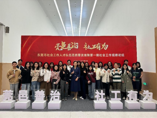 为深化社会工作理论与实践融合,提升研究生专业素养与实践能力,我院社会工作专业研究生团队在2025年3月21日上午参加了由中共东莞市委社会工作部、东莞市民政局联合主办,东莞市社会工作协会承办的《莞邑善治·社工有为:东莞市社会工作人才队伍高质量发展暨第一期社会工作观察论坛》。本次论坛以"汇聚专业社工力量 助力高质量发展"为主题,汇聚了政府部门、高校学者、社会组织代表及一线社工等多元主体,共同擘画东莞社会工作发展新蓝图。