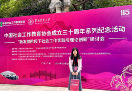 2024年10月25-26日,中国社会工作教育协会成立三十周年系纪念活动之“新发展阶段下社会工作的实践与理论创新”研讨会在华南农业大学隆重举行。本次年会吸引了来自华南地区各大高校的专家学者、在读研究生、本科生,社会工作实务界人士共240余人参会,共同探讨社会工作教育的高质量发展。我院四名研究生代表参加了此次研讨会。
